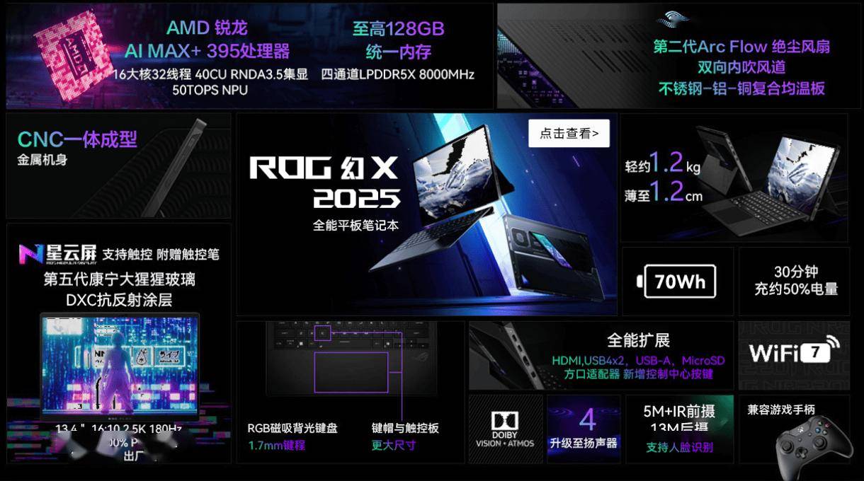 综合来看,ROG幻X 2025是一款集高性能、多模态使用场景和卓越使用体验于一体的平板笔记本产品。目前,这款笔记本已经开启预约,并将于2月25日正式发售。感兴趣的朋友不妨抓紧时间,亲身体验这款科技杰作带来的无限魅力。