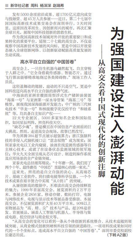 芯片领域的突破更具象征意义。华为昇腾384超节点展示出每秒千亿次计算能力,浙江强脑科技的非侵入式脑机接口让“意念操控”成为现实。深圳亚泰光电凭借工业内窥镜与油液监测传感器技术,在设备状态监测领域占据全球领先地位。该公司总经理郑翔感慨:“我们用了二十年时间,终于点亮了中国芯片最核心的那束光。”这种从技术追赶到并跑领跑的转变,在高交会上随处可见。