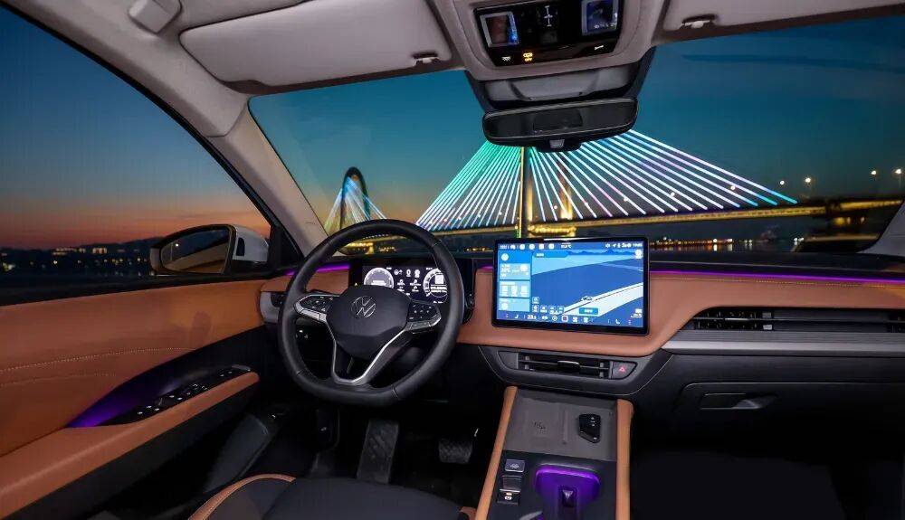 内饰方面,全新速腾S采用环抱式座舱布局,双拼配色搭配大面积软质包覆,营造出温馨舒适的驾乘环境。12.9英寸中控屏与10.25英寸仪表盘组成的双屏系统,搭载高通8155芯片,配合科大讯飞语音交互系统及AI大模型矩阵,实现了多轮对话与多意图精准理解,大幅提升了智能化体验。电子怀挡设计、30色可调节氛围灯以及智能温控系统的加入,进一步提升了车内的豪华感与实用性。