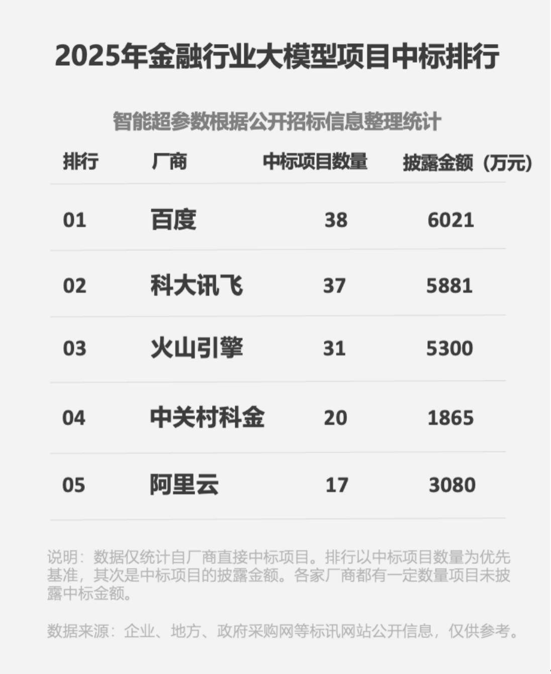 金融行业正加速拥抱大模型技术,2025年公开市场招投标数据显示,该领域全年大模型中标项目数量达587个,中标金额突破15亿元,较上一年度分别增长341%和527%。这一趋势表明,大模型已从技术验证阶段转向规模化应用阶段,成为金融机构数字化转型的核心驱动力。