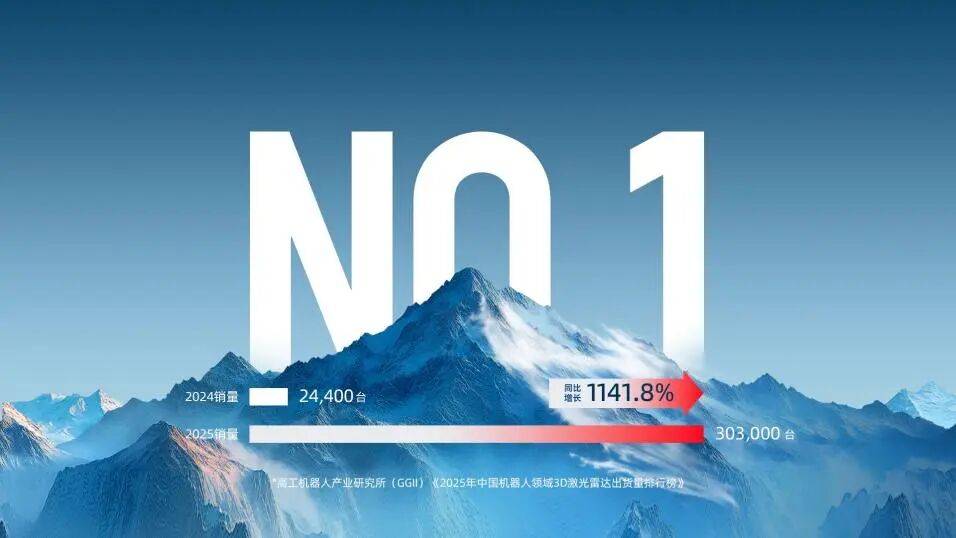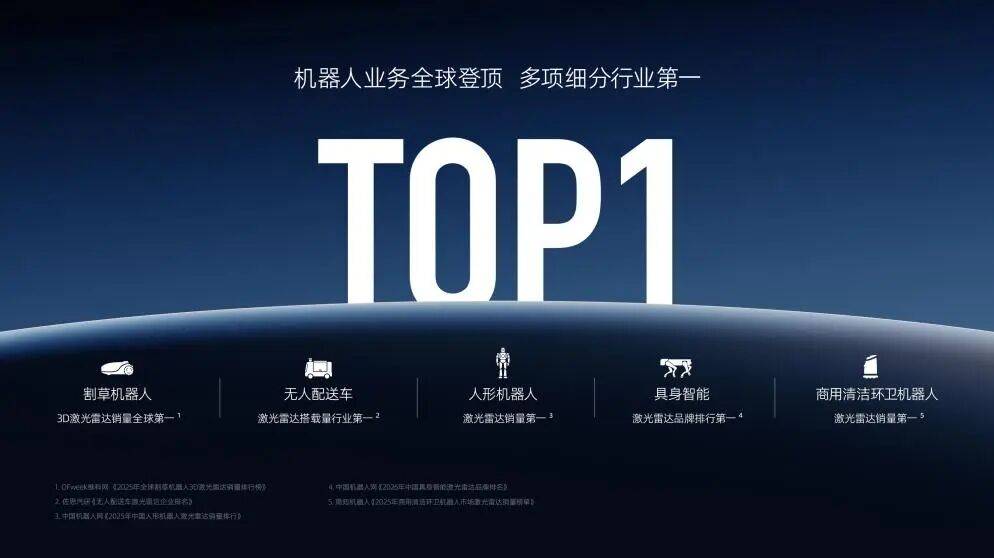 机器人业务成为公司增长的核心引擎。第四季度机器人激光雷达销量达22.12万台,同比激增2565.1%;全年销量突破30.3万台,同比增长1141.8%,稳居全球机器人激光雷达市场销量榜首。在细分领域,公司斩获全球割草机器人、商用清洁环卫机器人、中国人形机器人、无人配送车及具身智能机器人等多个领域的销量冠军,形成全面领先优势。