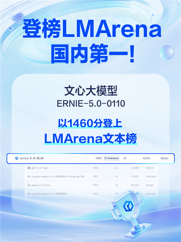 国际权威评测机构LMArena最新发布的榜单显示,文心大模型ERNIE-5.0-0110以1460分跻身文本生成领域全球前十,位列国内第一。在数学推理专项评测中,该模型更以全球第二的成绩展现其多模态能力优势。值得注意的是,此前发布的文心大模型5.0 Preview版本已在同一榜单中取得全球并列第二的佳绩。