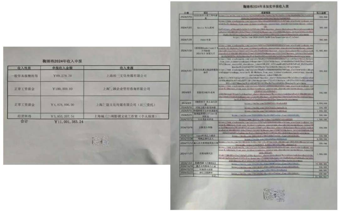 近日,演员鞠婧祎与前经纪公司丝芭传媒的合约纠纷再度升级,一场围绕偷税举报、合约效力及商业权益的争议持续发酵。3月31日,一则“鞠婧祎被实名举报偷税漏税”的话题登上微博热搜榜首,举报材料显示,其2024年申报收入约1100万元,但同年6月至12月实际收入超5000万元,涉嫌瞒报比例达88%。举报中提及的收入明细包括FENDI手袋代言、范思哲推广、百度地图代言及网剧《月鳞绮纪》1600万元片酬等。