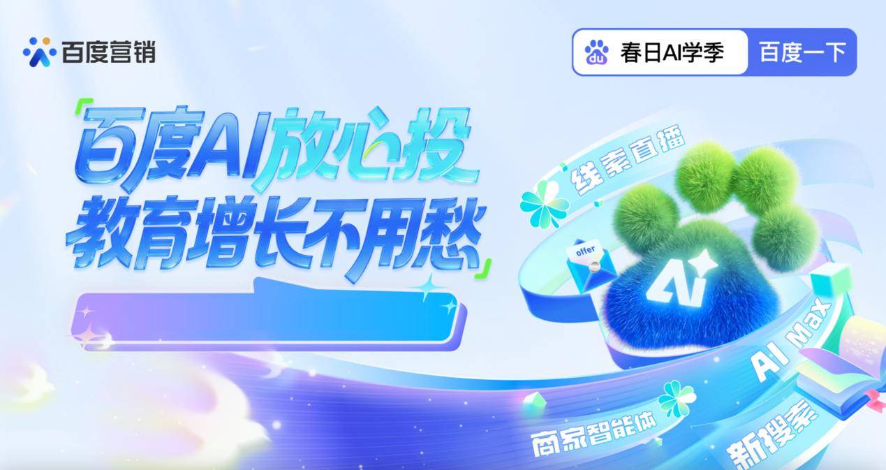 在教育行业春招竞争白热化的背景下,百度营销近日推出以AI技术为核心的营销解决方案,通过"全场景流量覆盖、智能投放提效、全链路经营优化"三大维度,为教育机构突破增长瓶颈提供创新路径。该方案以商家智能体为核心载体,将AI能力深度融入招生营销全流程,助力机构实现高效获客与成本优化。