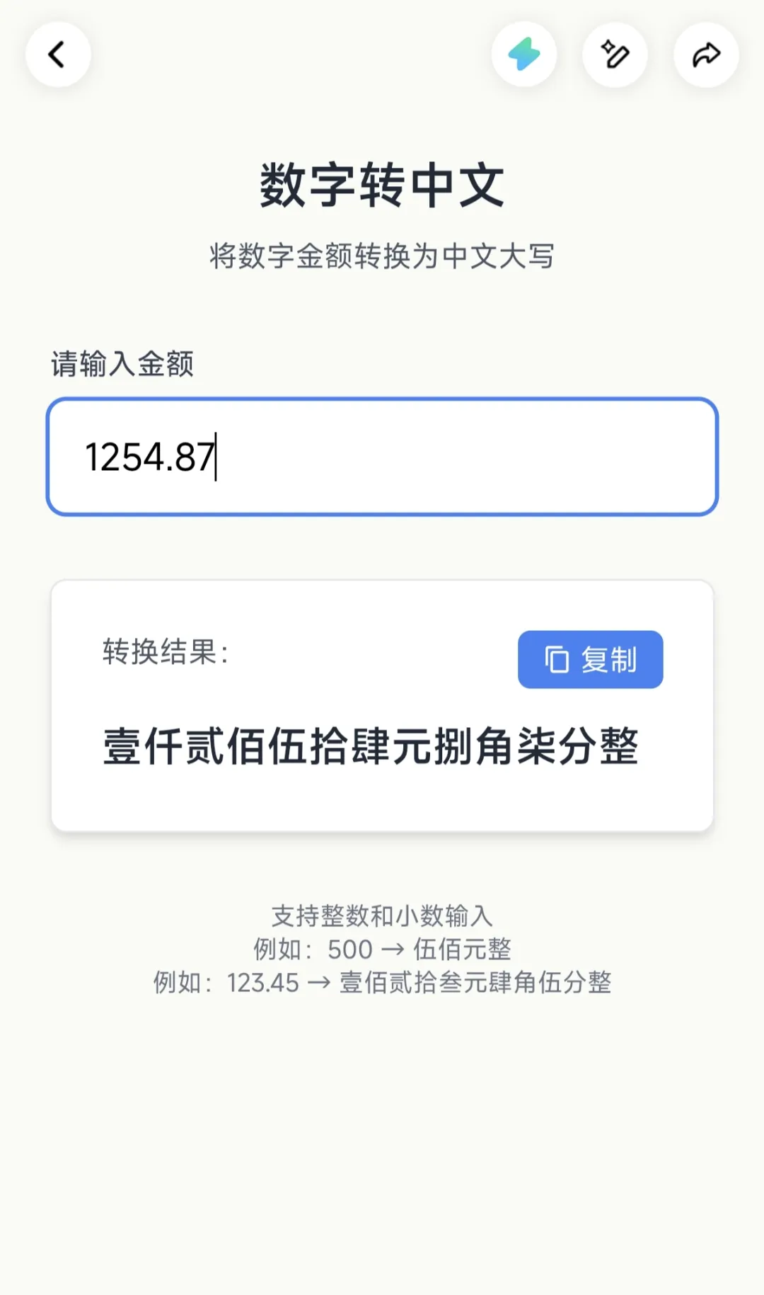 很快,一个“数字转大写”的闪应用就生成了。
