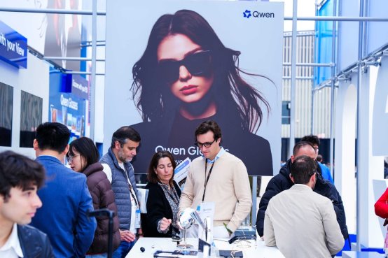 这是千问AI眼镜的全球首秀,作为阿里巴巴推出的最新AI硬件,加之现场高达5米醒目的“Qwen”标识,展台吸引大量海外观众排队体验。