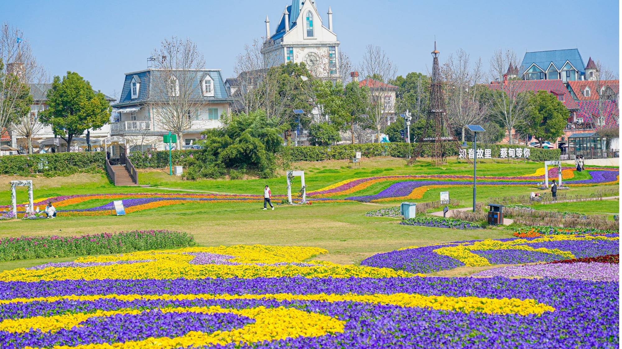 花博汇景区内,60万株郁金香与40万株冰岛虞美人已进入盛放期,层层叠叠的花海如斑斓地毯铺展大地;樱花村的近万株樱花预计3月中下旬迎来最佳观赏期,粉白花海与欧式小镇建筑相映成趣,成为游客拍照打卡的热门场景。除自然景观外,景区还推出了全天候演艺内容:白天有《十二花神令》《不折风骨》等国风巡游与互动点位,夜间则以“繁花盛焰”压轴大戏震撼登场,融合火秀、威亚表演与爆破特效,打造“白加黑”沉浸式体验。