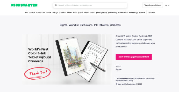 先是推出了inkNote Color(全球首款Kaleido 3彩色墨水屏智能办公本)在Kickstarter和Indiegogo上众筹80万美元,帮助大量干眼症用户摆脱了屏幕焦虑。